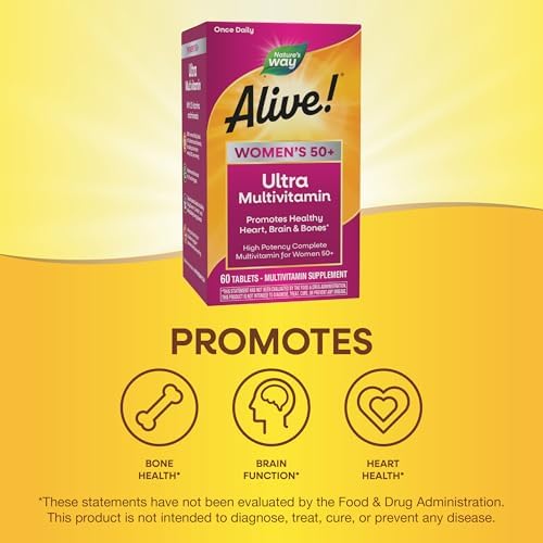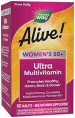 Nature’s Way Alive! Women’s 50+ Ultra Multivitamin supports heart, brain function, bone health, immune system and eye function, plus energy metabolism; a great women’s 50+ multivitamin option*