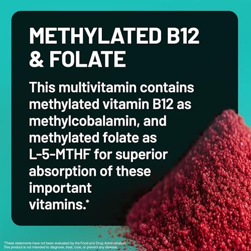 METHYLATED B12 & FOLATE: This multivitamin for women contains methylated vitamin B12 as methylcobalamin, and methylated folate as L-5-MTHF for superior absorption of these important vitamins.*
