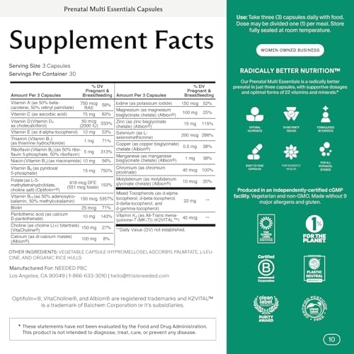 STREAMLINED ESSENTIALS: Our most complete prenatal for women pared down to the essentials—23 vitamins and minerals in highly supportive dosages, delivering optimal nourishment in just 3 capsules daily.