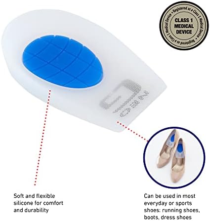 The targeted blue massage cushion zone combined with the premium silicone maximises shock absorption, cushioning and support to the heel to help relieve pain from Planter Fasciitis, Achilles Tendonitis, Heep Spurs.