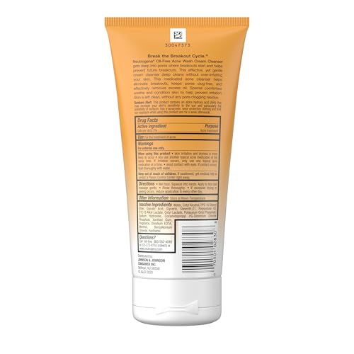6.7 oz Neutrogena Oil-Free Acne Face Wash Cream Cleanser contains 2% salicylic acid to treat and prevent breakouts while removing dirt, excess oil, and impurities without over-drying or clogging pores