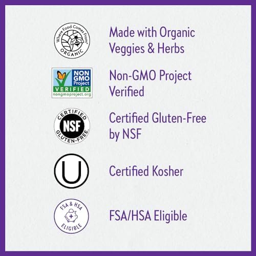 1st PRENATAL VITAMIN to be made with Certified Organic Vegetables & Herbs, Non-GMO Project Verified, 100% Vegetarian, Certified Kosher, Certified Gluten-Free by NSF, No Added Sugar, No Synthetic Fillers, No Artificial Colors or Flavors, No Animal Gelatin