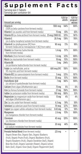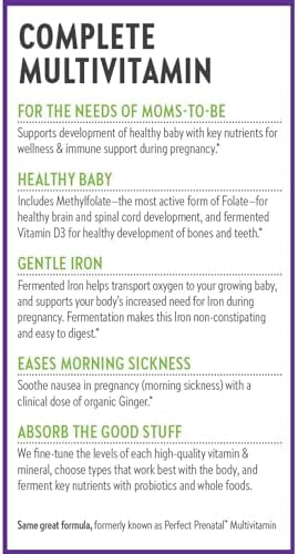 3 NUTRIENT-PACKED TABLETS with Superfoods and safe herbs plus fermented nutrients to support baby’s healthy development and mom’s healthy pregnancy. 100% Daily Value of Iron, plus Folate, B Vitamins, Vitamin D3, Vitamin C, A & Zinc.