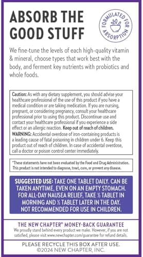 Pregnant after 35, or planning to be? Meet the prenatal multi created just for you! New Chapter’s prenatal vitamin 35+ is crafted with higher levels† of essential high-quality vitamins and minerals to nourish baby and you. Includes cognitive-supporting Methylfolate & Choline, gentle non-constipating Iron, and a clinical dose of Ginger for nausea relief.* Expertly formulated for absorption, each one-daily tablet is packed with fine-tuned levels of nutrients, plus key vitamins & minerals are fermented with beneficial bacteria and whole foods. So gentle you can even take it on an empty stomach. *These statements have not been evaluated by the Food and Drug Administration. This product is not intended to diagnose, treat, cure, or prevent any disease. (†compared to One Daily Prenatal).