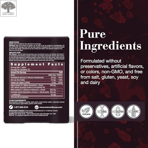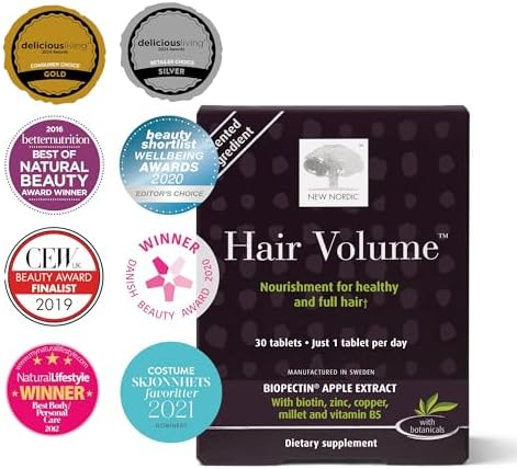 Home Hair care Hair vitamins New Nordic Hair Volume Tablets, 3000 mcg Biotin & Biopectin Apple Extract, Hair Vitamins to Support Natural Hair Growth, 30 Count (Pack of 1)