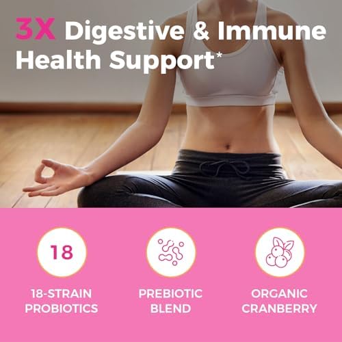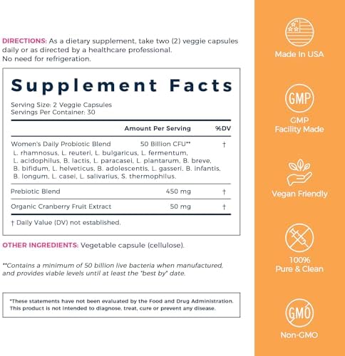 Tailored Probiotics for Women: NewRhythm Female Probiotics Delivers 50 Billion CFU Probiotics, 50 mg Organic Cranberry Fruit Extract, and 450 mg Prebiotic Blend to Ensure You Get All You Need for Your Digestive and Feminine Support.* Optimal Doses for Daily Maintenance and First-Time Probiotic Users. Featuring Targeted Release Technology Helps Probiotics Survive Stomach Acids and Reach Your Intestinal and Vaginal Tract.