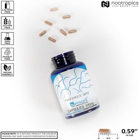 Nootropics Depot Sensoril Ashwagandha Capsules | 125mg | 180 Ct. | Ayurveda Supplement | Standardized Withania somnifera Extract | to Support Healthy Energy, Mental Cognition + Cardiovascular Health