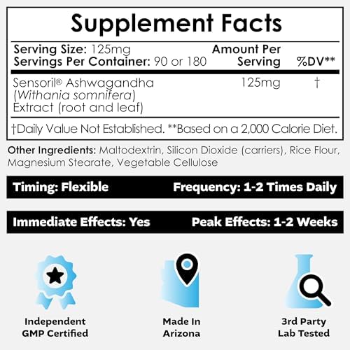Home Natural and Herbal wellness Ashwagandha Nootropics Depot Sensoril Ashwagandha Capsules | 125mg | 180 Ct. | Ayurveda Supplement | Standardized Withania somnifera Extract | to Support Healthy Energy, Mental Cognition + Cardiovascular Health