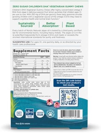 DELICIOUS & NUTRITIOUS – With 250 mg of omega-3 DHA from marine algae in every tasty serving, Children’s DHA Vegetarian Gummy Chews give kids a fun and reliable way to support normal brain function and development.*