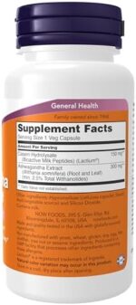 Now Supplements, Ashwagandha Stress Relief, Mood and Sleep Support*, with Clinically Studied Lactium®, Promotes Relaxation & Restful Sleep*, 60 Veg Capsules