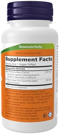 Supports Healthy Prostate Function* With Pumpkin Seed Oil Saw palmetto is a botanical known to help support healthy urinary flow and prostate function.* NOW has included pumpkin seed oil as a base for this product as a nutritional oil contributing essential fatty acids and phytosterols that are important for men’s health.* Natural color variation or natural separation of oils may occur in this product.
