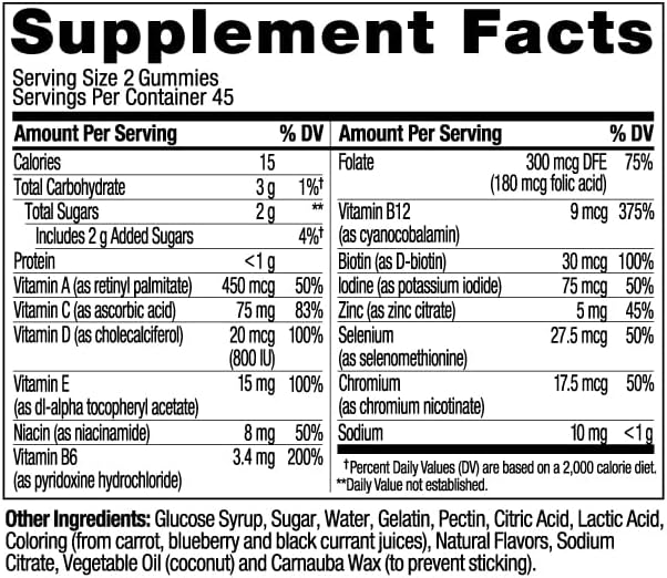 DELIGHTFULLY TASTY: These men’s multivitamins come in Blackberry Blitz flavor with other natural flavors with no synthetic colors or flavors and gluten-free. 90 gummies per bottle (45 day supply)