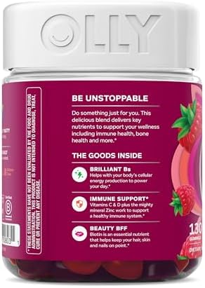OLLY Women’s Daily Multivitamin Gummy, Vitamins A, D, C, E, Biotin, Folic Acid, Adult Chewable Vitamin, Berry Flavor, 65 Day Supply – 130 Count