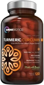 Be the first to review “OmniBiotics Organic Turmeric Curcumin Supplement with Black Pepper Extract – 1500mg Turmeric with 95% Curcuminoids & BioPerine, High Absorption for Joint Support – 120 Vegan Capsules” Cancel reply
