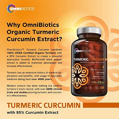 OmniBiotics Organic Turmeric Curcumin Supplement with Black Pepper Extract – 1500mg Turmeric with 95% Curcuminoids & BioPerine, High Absorption for Joint Support – 120 Vegan Capsules