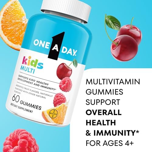 One A Day Kids Multivitamin Gummies, Kids Vitamins with Vitamin C, D, E & Zinc for Immune Support, Childrens Gummy Vitamins, Assorted Fruit Flavors, 60ct (Packaging May Vary)