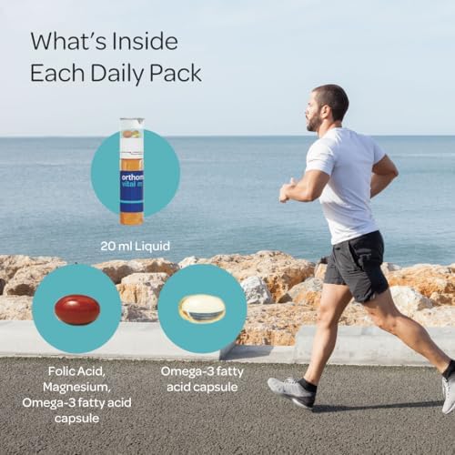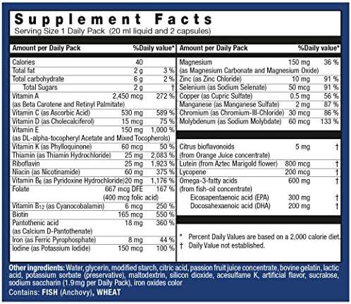 2-IN-1 DELIVERY SYSTEM. Each package provides a 30-day supply. Each daily pack includes liquid supplement with omega-3 and capsules—easy to take with (or after) a meal for complete nutritional support. Each daily pack provides essential nutrients for men’s health, energy, and resilience