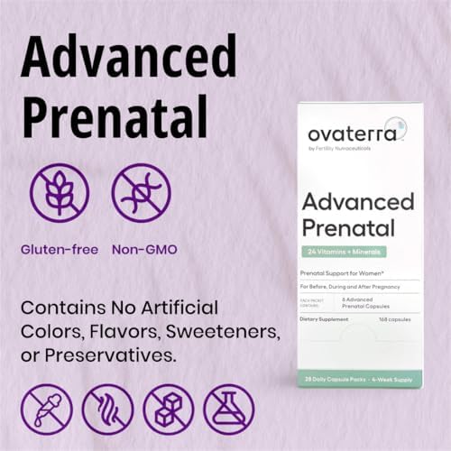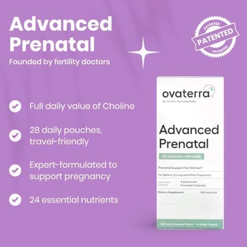 Home Women health Prenatal care Ovaterra Advanced Prenatal Vitamins for Women with 550mg Choline, Methylfolate, Chelated Iron & 24 Nutrients 168 Capsules – 28 Day Supply