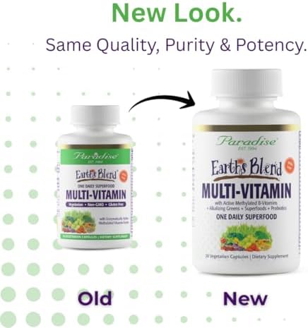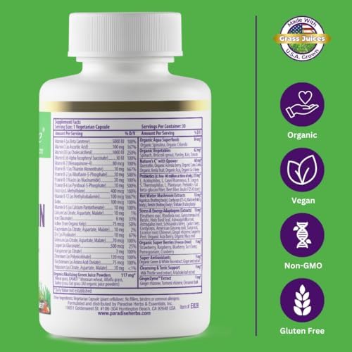 Paradise Herbs Earth’s Blend Women’s Once Daily Multivitamin with Iron, 48 Organic Superfoods, Probiotics, Antioxidants, Vitamins A, B12, C, D, K2, Daily Superfood, 30 Capsules