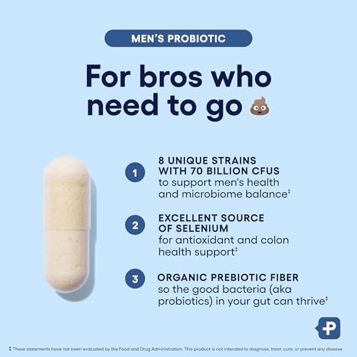 Once Daily Probiotics for Men: Designed specifically to support men’s digestive health and overall well-being. With 8 diverse strains (70B CFU) our probiotic and organic prebiotic blends supports a balanced microbiome, colon and immune health. Same great product you love, with a new look. Packaging May Vary!