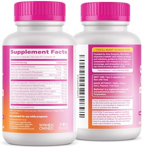 Holistic Hormone-Aware Support: This adrenal complex is a cortisol cocktail of a carefully curated blend of adaptogens, vitamins, and nutrients, including Organic Ashwagandha, Omega-3 DHA, Chamomile, Vitamin D, Vitamin B12, Methylated Folate, Saffron, and Organic Blueberry Extract. Formulated to help support your body’s natural stress response. For comprehensive hormone harmony from PMS to menopause and beyond, pair Pink Stork’s Cortisol Complex with our Magnesium Mist, Maca Root, and Cortisol Probiotics for women.