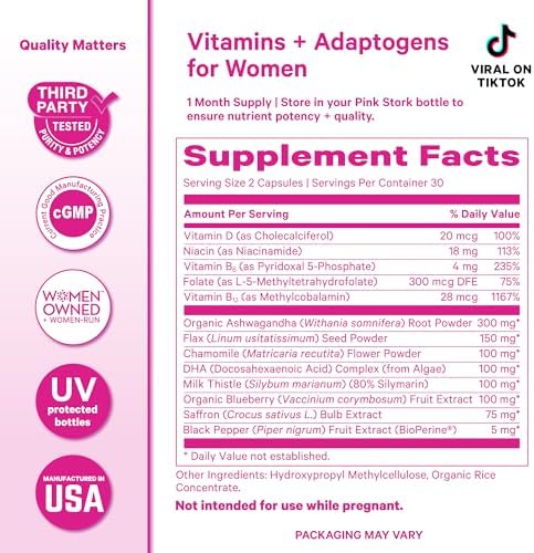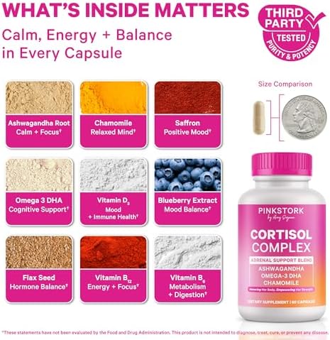 Home Women health Hormonal balance Pink Stork Cortisol Supplements for Women – Adaptogenic Adrenal Support & Stress Manager with Organic Ashwagandha, Omega 3, Saffron, Multivitamins – Mood & Hormone Balance for Women – 60 Count