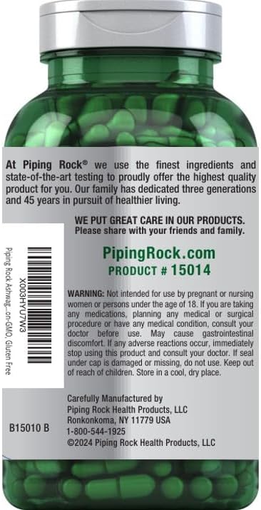 Piping Rock’s Promise: Piping Rock proudly offers an ever-growing selection of products designed to help you achieve your unique wellness goals. We verify all products with third-party, FDA-registered agencies ensuring purity, potency, safety, and innovation in everything we do. We’re committed to supporting you in your journey to healthy living, and we thank you for choosing us!