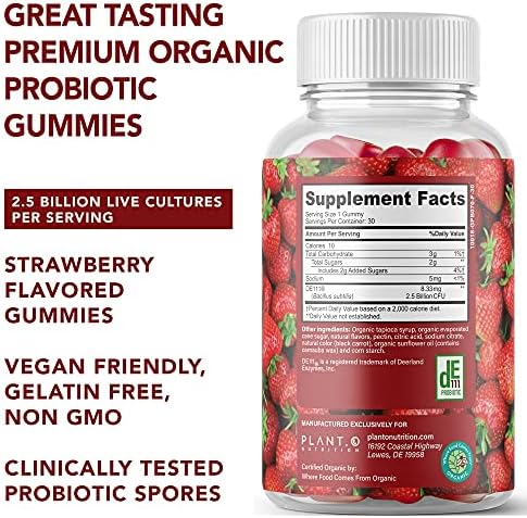 Home Probiotics Kids probiotics Plant.O Organic Probiotic Gummies for Women, Men & Kids [5 Billion CFUs USDA Certified] Help Support Digestion, Bloating, Constipation & Immune System, Strawberry Flavor, 30 Chewable Probiotics
