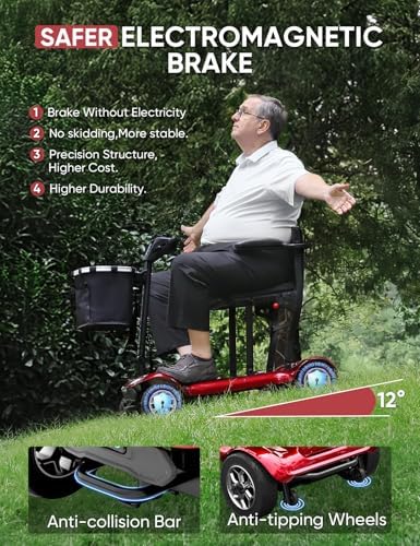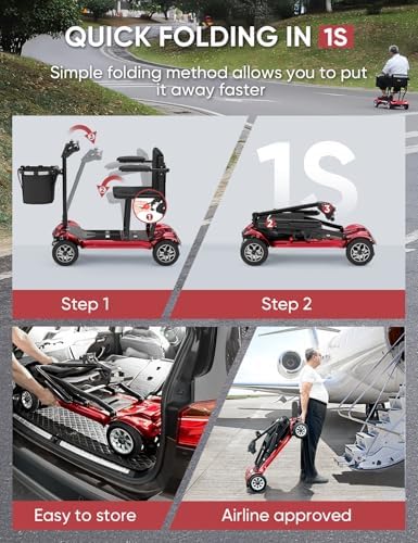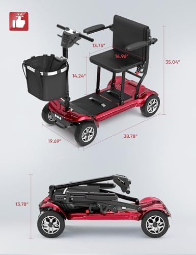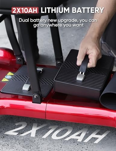 Powered Mobility Scooter for Adults, Seniors – 23MI Extra Long Range Foldable 4 Wheel Electric Motorized Scooter for Travels with Airport Approved Dual Batteries, All Terrain Motorized Scooter (Red)