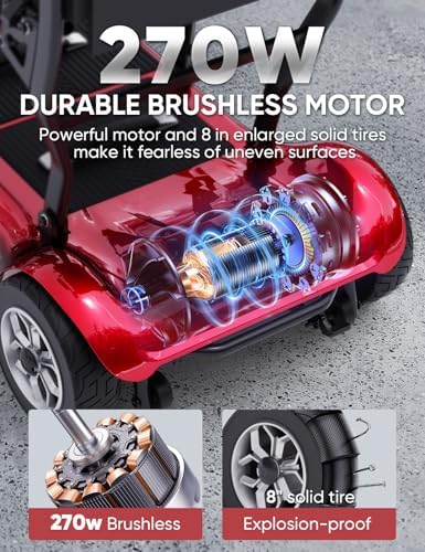 Powerful power, worry-free all-terrain: The mobility scooters for seniors equipped with a 24V 270W brushless motor, it provides ample horsepower to help you easily cope with various complex terrains. With 8-inch solid explosion-proof enlarged and widened tires, it can easily pass through lawns, gravel roads or beaches without obstacles. Powerful power and all terrain mobility scooter make you full of confidence every time you travel. Maximum load capacity: 243 lbs