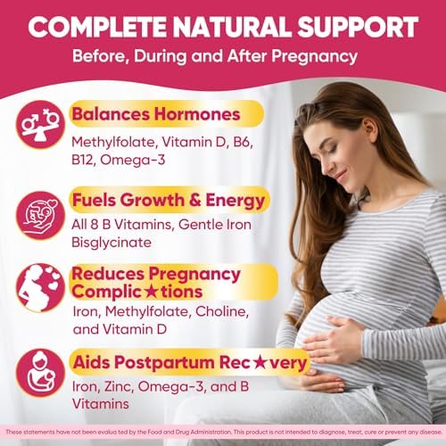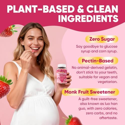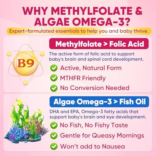 🧬Active Folate & Algae Omega-3: Prenatal vitamins gummies formulated with 5-MTHF, the bioactive form of folate (vitamin B9) for optimal absorption and ideal for those with the MTHFR gene. Supports your baby’s healthy brain and spinal cord development. Prenatal gummies enriched with Algae Omega-3 (DHA & EPA) to promote brain and eye growth—100% Vegan, Ocean-Friendly, and free from fishy aftertaste. Gentle on the stomach and ideal for moms-to-be.