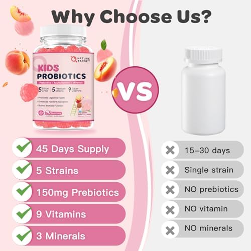 4-in-1 Formula: This probiotics for kids combining probiotics, prebiotics, vitamins, and minerals, promotes healthy digestion and full-body support for kids. With a remarkable 95% probiotic survival rate, it delivers 10X maximum efficacy!
