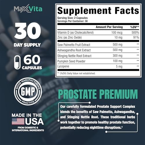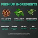PREMIUM INGREDIENTS – Each daily serving supports your prostate health with a potent blend of key ingredients: Saw Palmetto, Stinging Nettle, Ashwagandha, Pumpkin Seed Powder, Lycopene, Vitamin D & Zinc.