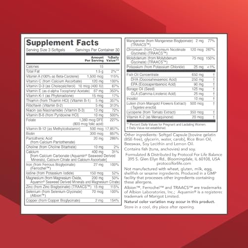Home Women health Prenatal care Protocol Pre-Natal Multivitamin with DHA – 250 mg DHA – for Pregnancy & Lactation Support* – with DHA, Calcium, Copper, B12 & Vitamin C – Halal & Dairy Free – 90 Softgels