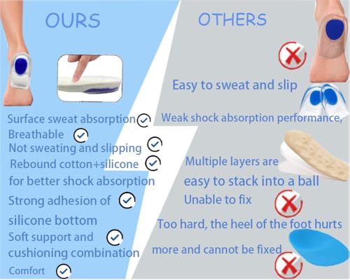 Self-Adhesive & Easy to Use-Come with adhesive backing ensures a secure grip inside any shoe type (sneakers, boots, flats, etc.) without slipping. No messy tapes or adjustments required—simply stick and go.Washable & Reusable-If they are not sticky enough after several days use or run into dirt, please wash them with warm water, let them dry, it will back strong sticky, and you can use them again.