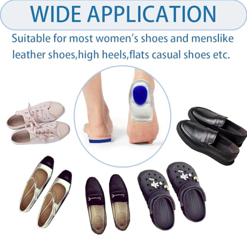 Gel Silicone Heel Cups/Pads with additional rebound and shock-absorbing cotton pads-There are two pair of 1.7CM heel lifts shoes heel pad in the packaging,Added rebound cotton pads for shoes for Achilles Tendonitis, Plantar Fasciitis, Bone Spurs, and general foot pain,Leg and knee pain, tibial pain, Sepsis pain, back pain and neck pain, as well as heel pain during running and walking. these gel pads absorb shock and reduce pressure during walking, running, or prolonged standing, providing immediate comfort and long-term support.