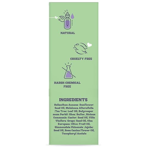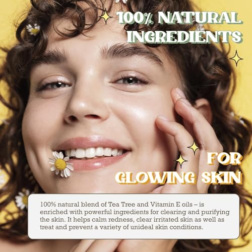 [100% Natural Ingredients for Sensitive Skin] Crafted as a facial serum with plant-based oils to soothe, clarify, and hydrate. Tea tree oil for face calms blemishes and irritation, while jojoba and grapeseed oils moisturize without clogging pores. Shea butter and olive oil strengthen the skin barrier, and Vitamin E supports healing and resilience.