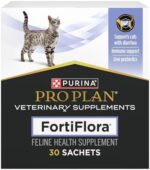 Provide specialized support for your cat by introducing them to Purina Pro Plan Veterinary Supplements FortiFlora probiotic powder cat food supplement for cats with diarrhea. This cat digestive health formula contains a probiotic strain proven to promote intestinal health and balance. Formulated for the dietary management of cats with cat diarrhea, this safe and effective Purina Pro Plan for Cats is simple to administer by adding it to your cat’s food. Each packet of this cat probiotics supplement contains a guaranteed level of live microorganisms that help promote beneficial intestinal microflora. A proprietary microencapsulation process helps enhance the stability and survival of the digestive probiotics in FortiFlora for cats until they reach your cat’s intestinal tract. This Purina Pro Plan sensitive stomach cat food supplement also contains antioxidants to support cat’s immune system. FortiFlora probiotics for cats supplements are appropriate for administration to both kittens and adult cats.
