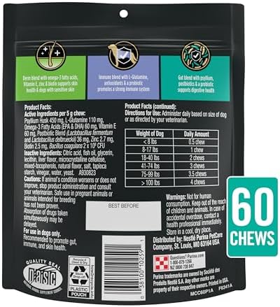 Category: Daily probiotics Tags: 30ct, Canine, Care, Chews, Dogs, Gut, Health, Immune, Multi, Omega, Plan, Pouch, Pro, Purina, Skin, Supplements, Supports, Veterinary
