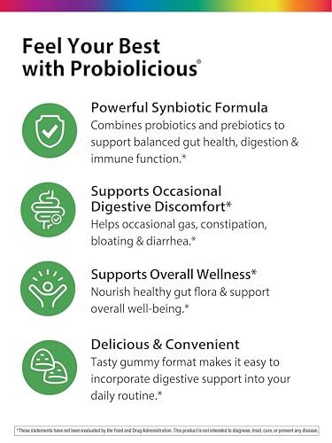 Rainbow Light Probiolicious Probiotic and Prebiotic Gummies are a men’s and women’s probiotic supplement that makes it easy for you to be proactive about your digestive and immune health (1). These probiotic capsules deliver a clinically researched probiotic and prebiotic blend to provide daily digestive health and immune support (1). These mens and womens probiotics offer shelf-stable probiotics backed by clinical research, plus inulin and fructooligosaccharides to deliver important prebiotics that promote the growth of healthy bacteria in your intestinal system (1). Adults, chew and swallow two gummies daily to support immune and colon health (1). Founded in 1981 in Santa Cruz, California, Rainbow Light has been passionate about holistic wellness and creating nutritional supplements that prioritize potency and results for over 40 years. Rainbow Lights goal is to give you one less thing to worry aboutan easy way to give yourself and your family a solid foundation to thrive every day. (1) These statements have not been evaluated by the Food and Drug Administration. This product is not intended to diagnose, treat, cure or prevent any disease.