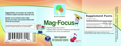 Home Natural and Herbal wellness Raise Them Well Magnesium Focus Supplement for Kids | Natural Strawberry Flavored | 90 Chewable Tablets