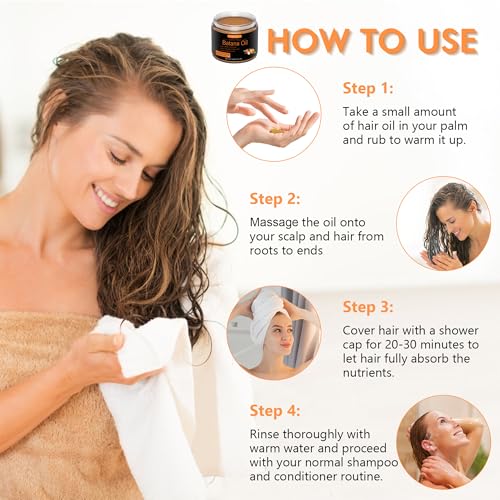 Simple to Use: Massage a generous amount of this hair growth oil into scalp for 3-5 minutes, leave it on and cover with a showercap for 20-30 minutes, then rinse with warm water. Use it as a regular part of hair care routine to get the best performance to nourish, moisturize, fortify and preven hair damage