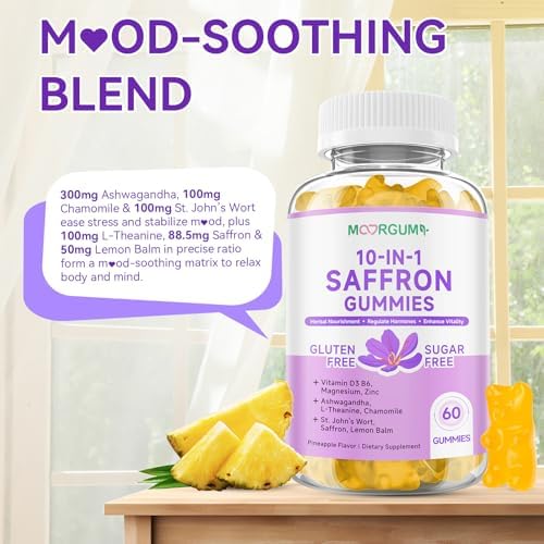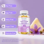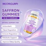 Saffron Gummies for Adult Kids, 10-IN-1 Regulate Cortisol Supplement with Saffron 88.5mg, Vitamin D3, B6, Magnesium, Zinc, Ashwagandha, L-Theanine, St. John’s Wort, For Emotions, Slumber, 60 Count