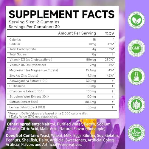 Comprehensive Nutrient Profile: Beyond saffron, these gummies deliver a well-rounded blend of essential nutrients. Vitamin D3 (as Cholecalciferol) is crucial for maintaining strong bones and teeth by aiding in calcium absorption. Vitamin B6 (as Pyridoxine) supports normal brain function and hormonal regulation. Magnesium and Zinc fuel key physiological processes like energy production and immune function, ensuring your body gets the support it needs.
