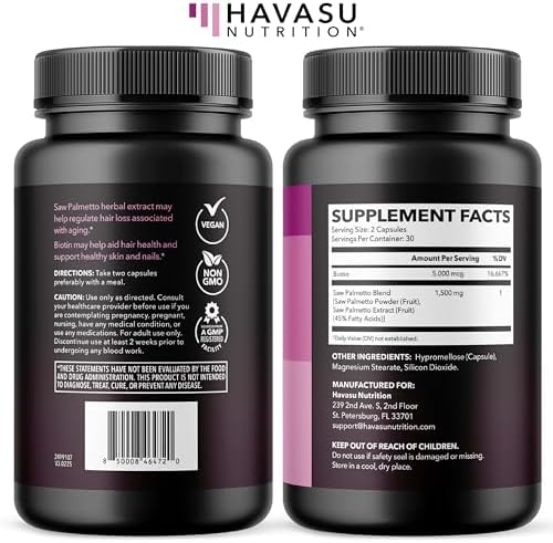 Enhanced Formula for Daily Care – Boost your daily beauty regimen with our powerful blend of saw palmetto and biotin, delivering essential nutrients to help maintain healthy-looking hair and radiant skin.