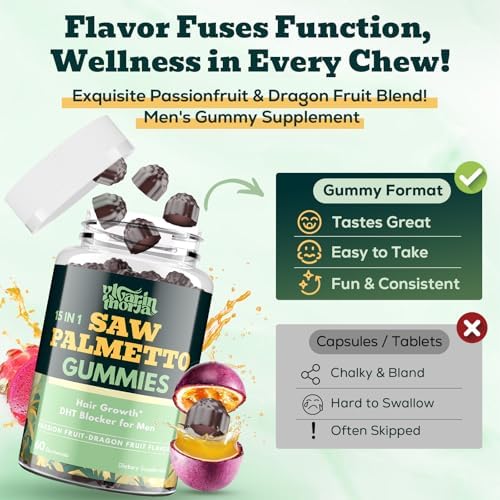 Home Men health Prostate health Saw Palmetto Gummies for Men – 600mg Extra Strength DHT Blocker with Biotin, Pumpkin Seed – Supports Prostate Function, Urinary Flow & Hair Regrowth Supplement, 60 Passionfruit-Dragonfruit Gummies