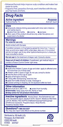 Scalpicin Maximum Strength contains 1% hydrocortisone Anti-Itch Liquid. The clear, non-greasy liquid is fast acting and easy to use. It’s enhanced formula helps improve scalp condition and makes hair easier to comb. Scalpicin Maximum Strength Helps relieve Scalp Itch associated with Psoriasis, seborrheic Dermatitis, and Eczema. Get quick relief when aggravating scalp itch flares up.