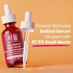 THE ONLY RETINOL SERUM TO EVER combine K Beauty Retinol + 97.5% concentration of Snail Mucin + Hyaluronic Acid + Bakuchiol. This unique combination of ingredients is an anti aging, skin clarifying powerhouse