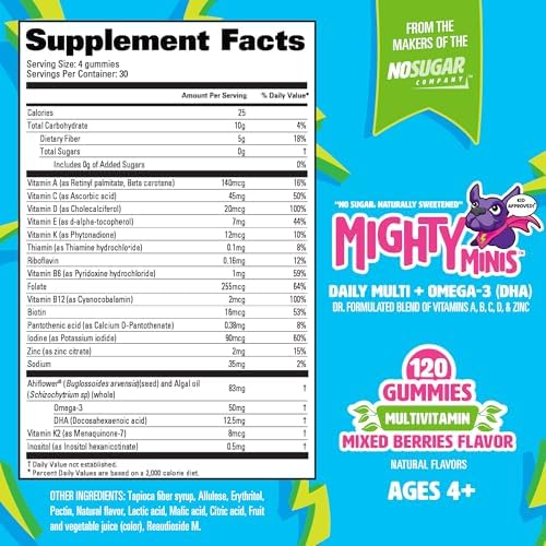 Kid Approved Mixed Berries Flavor: So tasty, they forget it’s a vitamin. A full serving is 4 sugar-free gummies, the perfect lunchbox treat they’ll love. Unlike several “healthy” options, kids actually look forward to eating these, without daily battles.