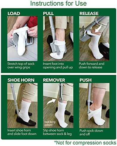 Category: Daily Living Aids Tags: Adjustable, Aid, Builtin, Compression, Device, Easy, Elderly, Horn, inches, Length, Products, Seniors, Shoe, Sock, Socks, TravelFriendly